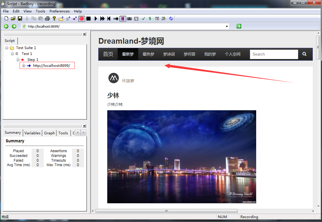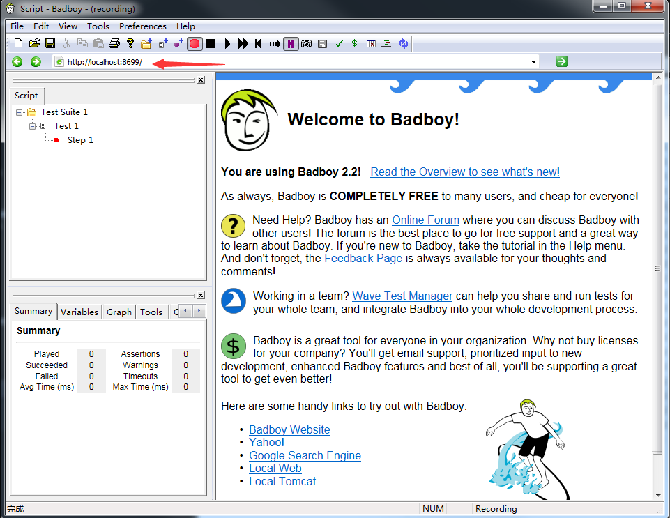 (1)点击badboy.exe ,打开BadBoy,界面如下: