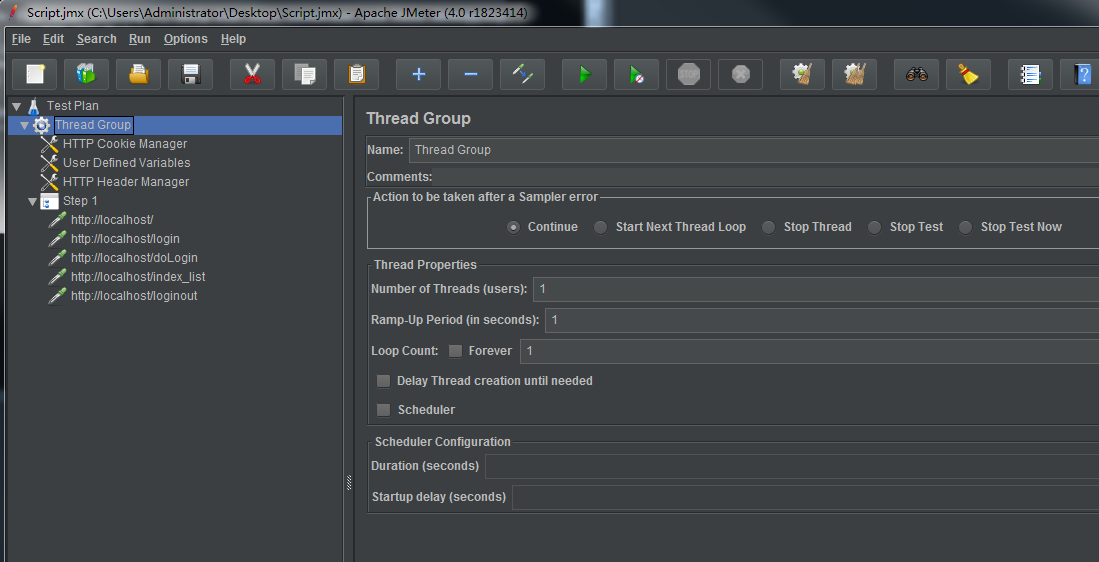 (2)File->Open打开刚才导出的jmeter脚本 界面如下: