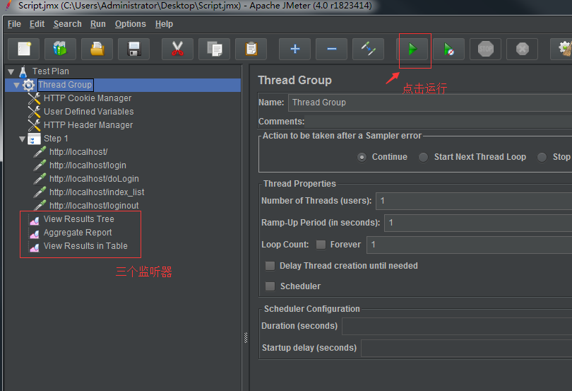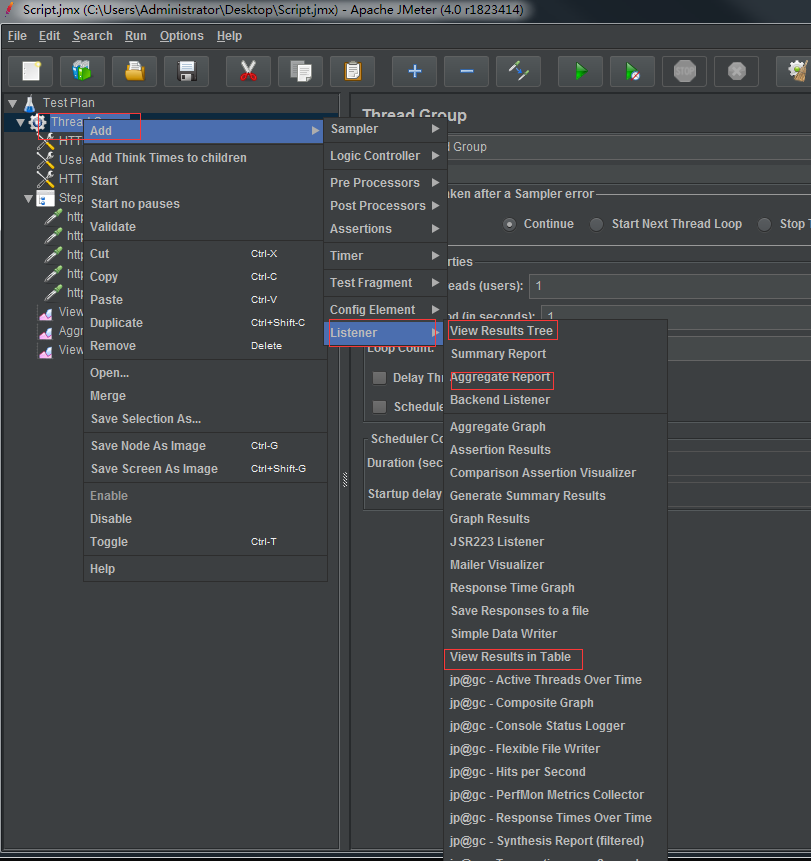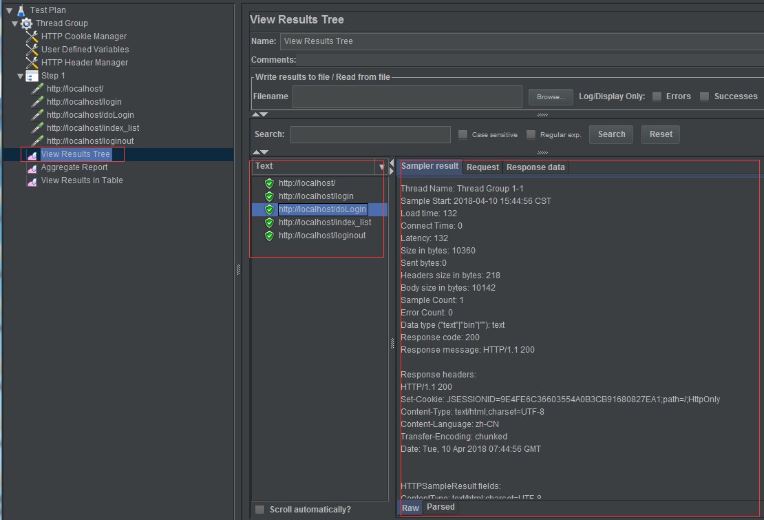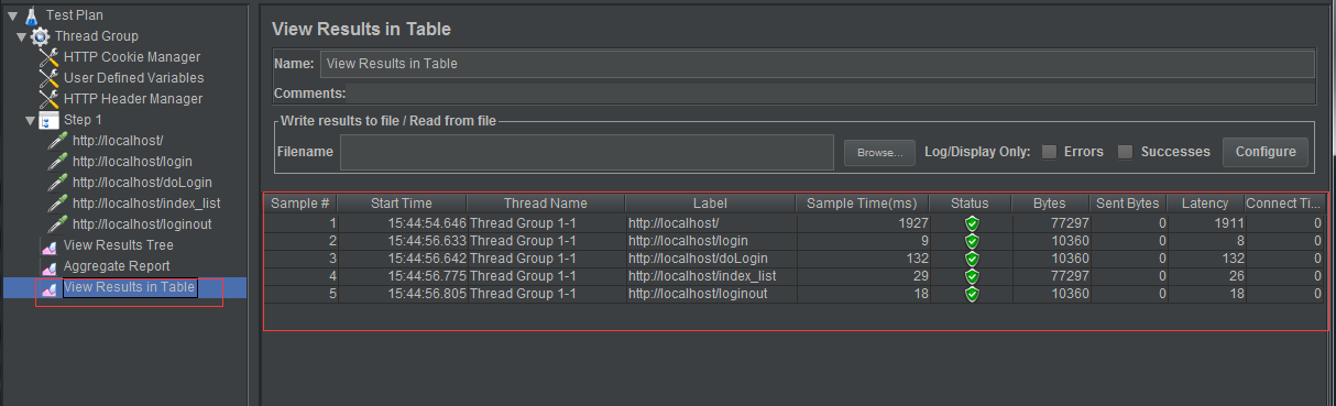 添加聚合报告、查看结果树和用表格查看,如下图: